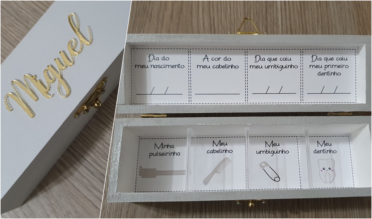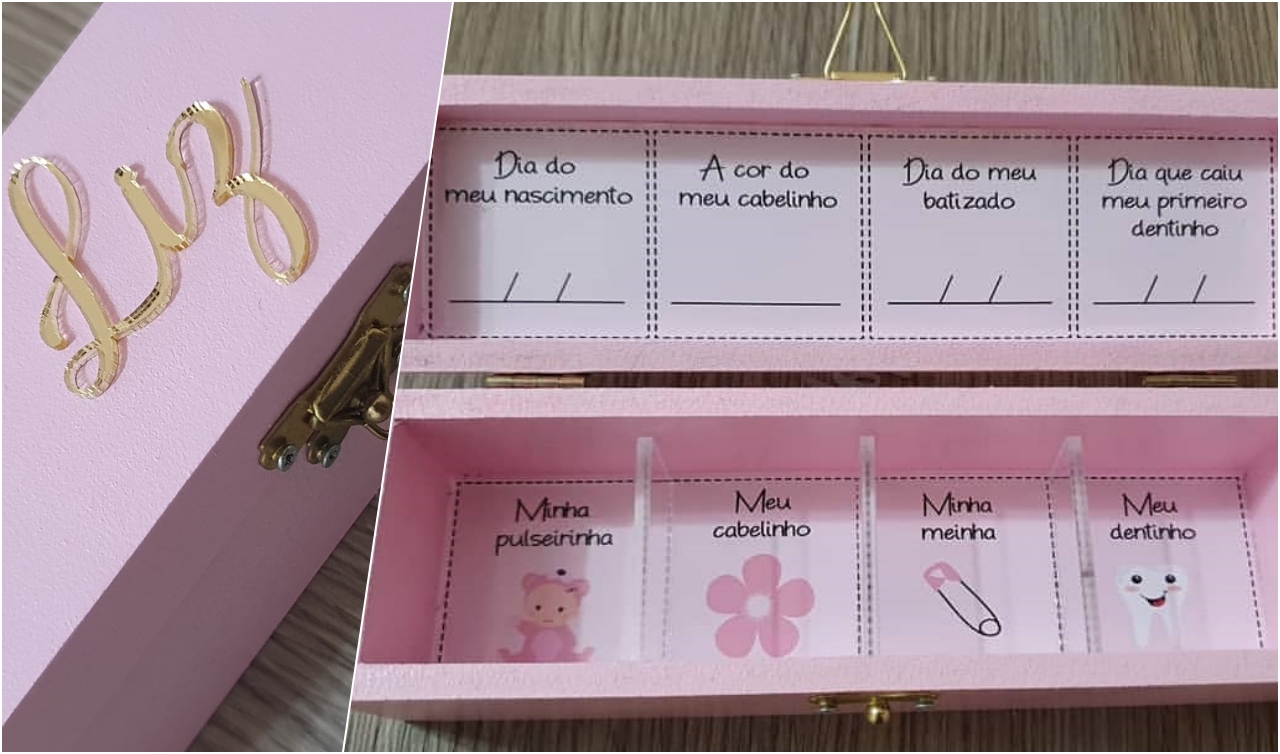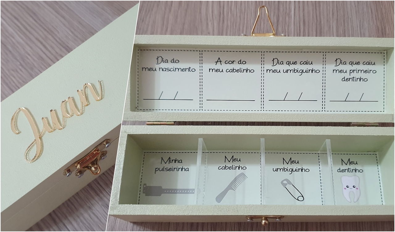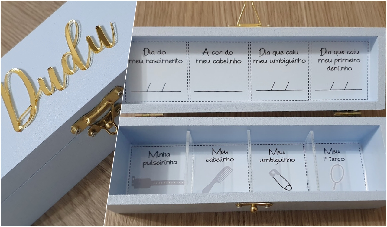 As caixinhas de lembrança são itens incríveis para preservar momentos importantes de nossos pequenos! Tanto as cores quanto as informações dentro da caixinha são personalizáveis.
